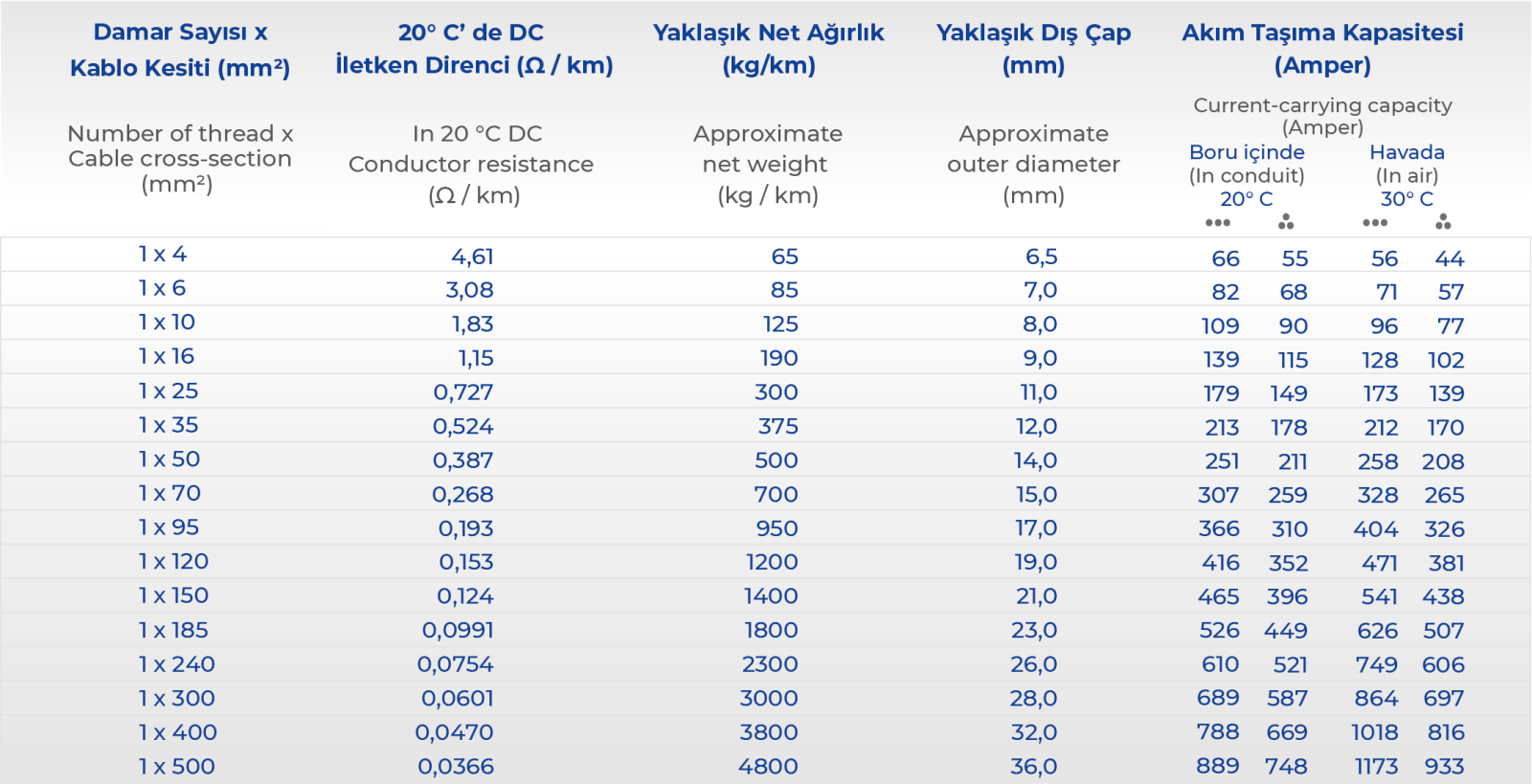 * Bir veya çok telli bakır iletken, * XLPE izole, * EVA bazlı dış kılıf