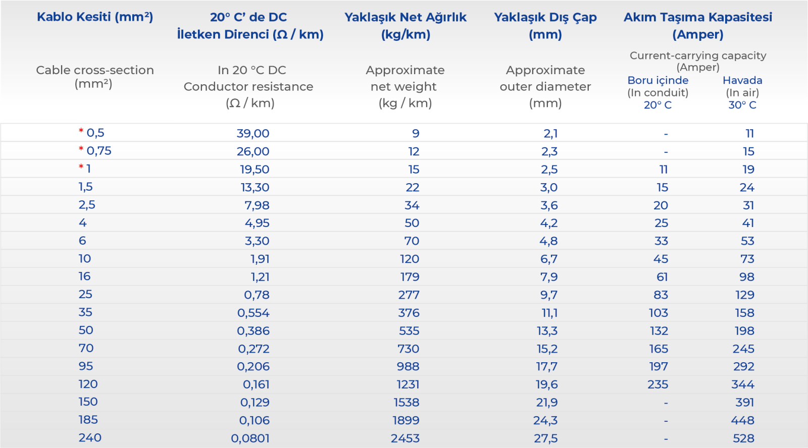 * İnce telli bakır iletken, * EVA bazlı XLPE izole